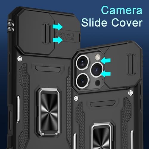 DEERLAMN Case for iPhone 16 Pro Max with Slide Camera Cover+Screen Protector (1 Pack), Rotated Ring Kickstand Military Grade Shockproof Protective Cover-Black